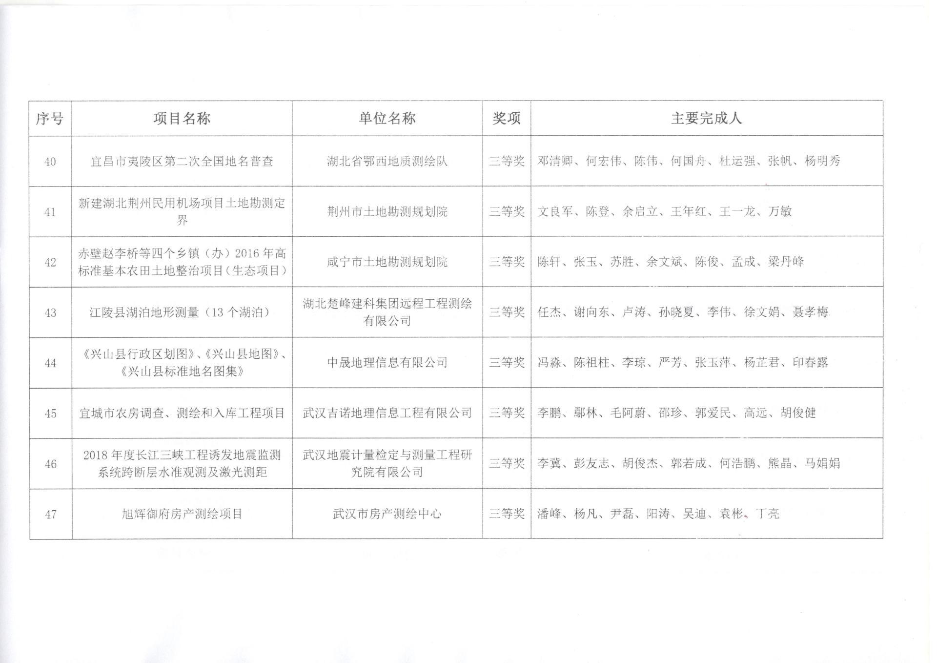 《宜昌市(shì)夷陵區(qū)第二次全國(guó)地(dì)名普查》項目于2016年(nián)3月(yuè)29日(rì)開(kāi)工(gōng),2017年(nián)5月(yuè)10日(rì)竣工(gōng),曆時(shí)396天。2019年(nián)5月(δyuè)份申報(bào),10月(yuè)10日(rì)經過初審、專家(jiā)評審、評審委員(yuán)會(huì)審核和(hé)公示,我隊《宜昌市(shì)夷陵區(qū)第二次全國(guσó)地(dì)名普查》項目獲省級優秀測繪工(gōng)程三等獎。