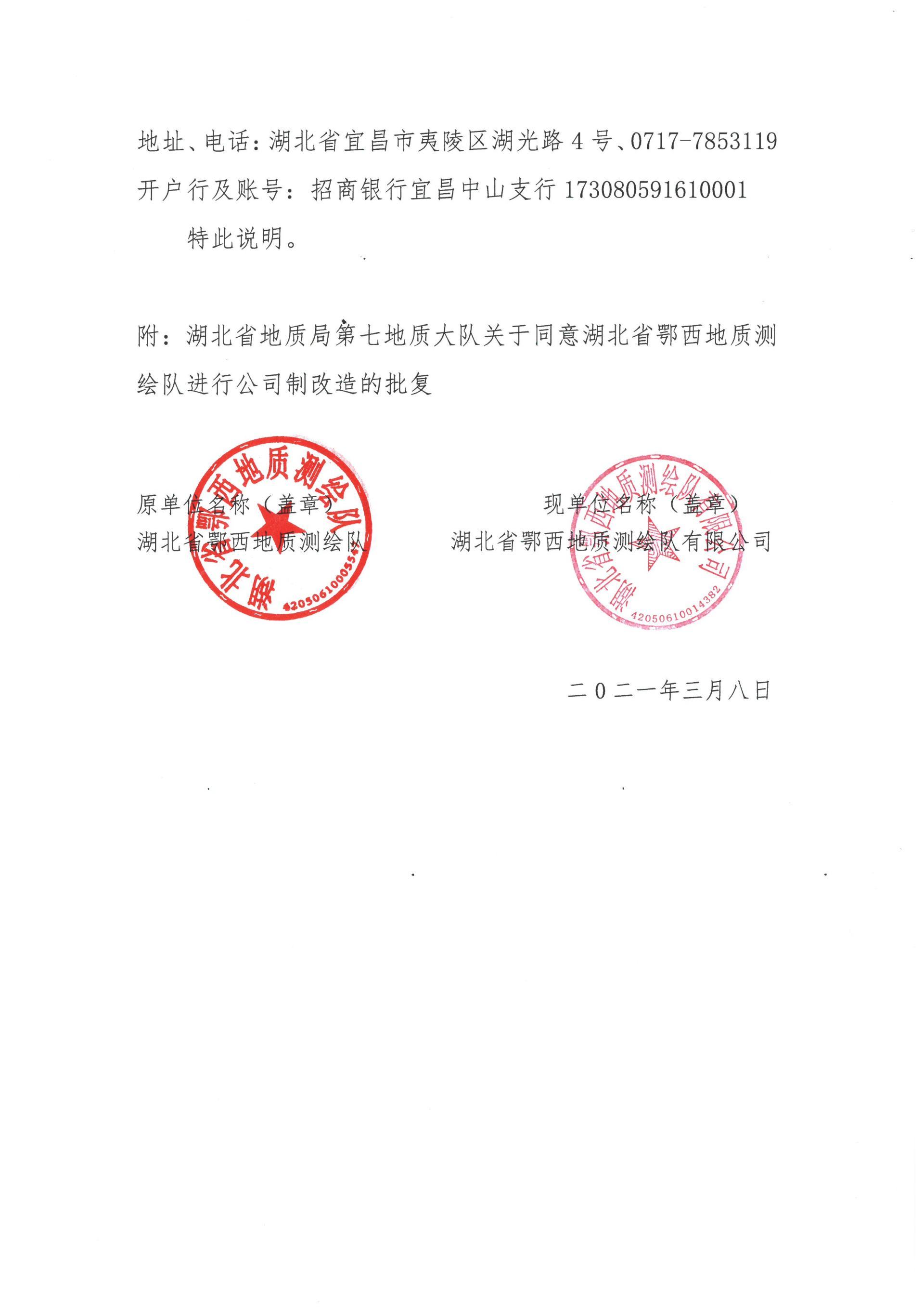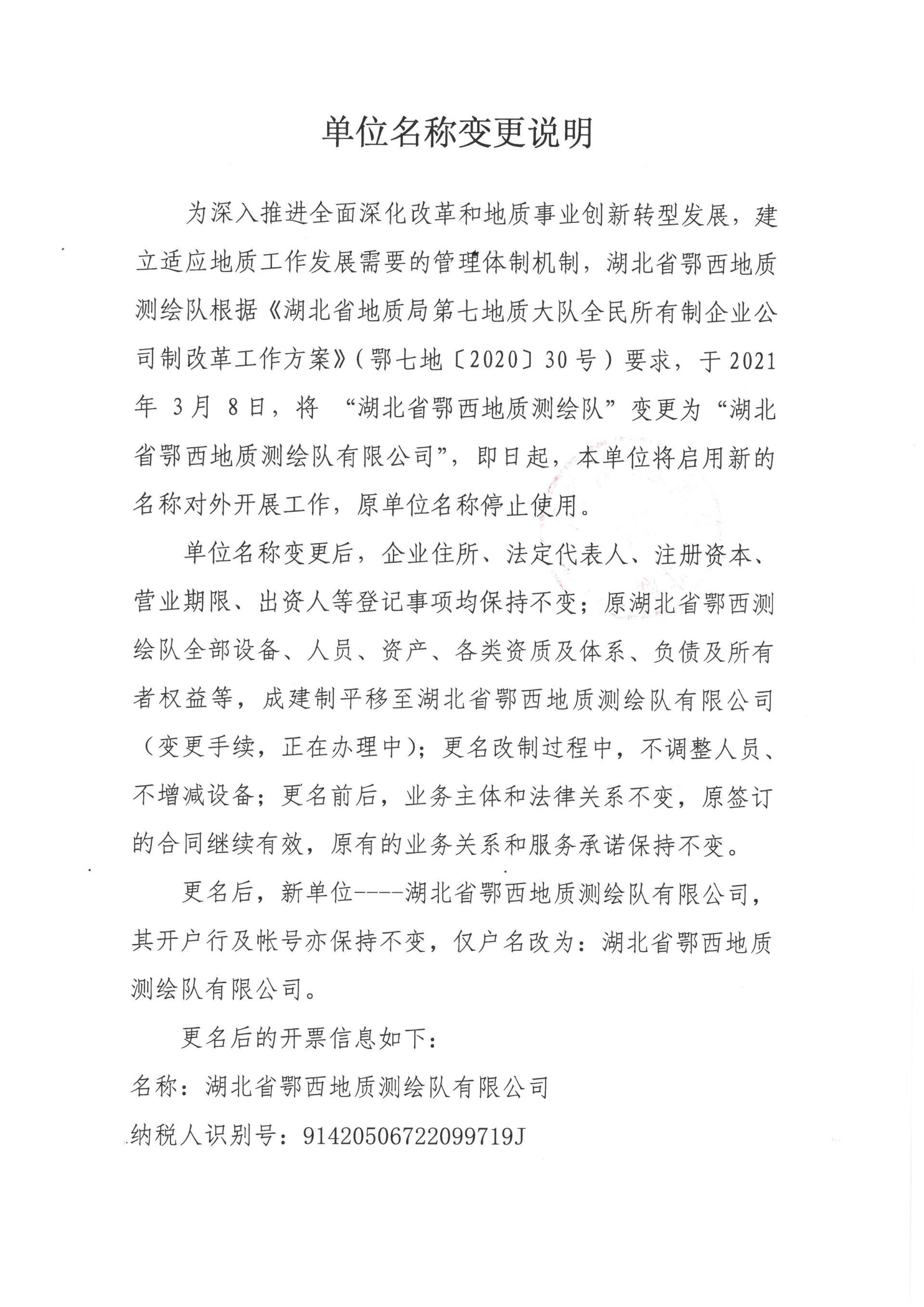 【重要(yào)通(tōng)知(zhī)】關于湖(hú)北(běi)省鄂西(xī)地(dì)質測繪隊更名的(de)₩通(tōng)知(zhī)