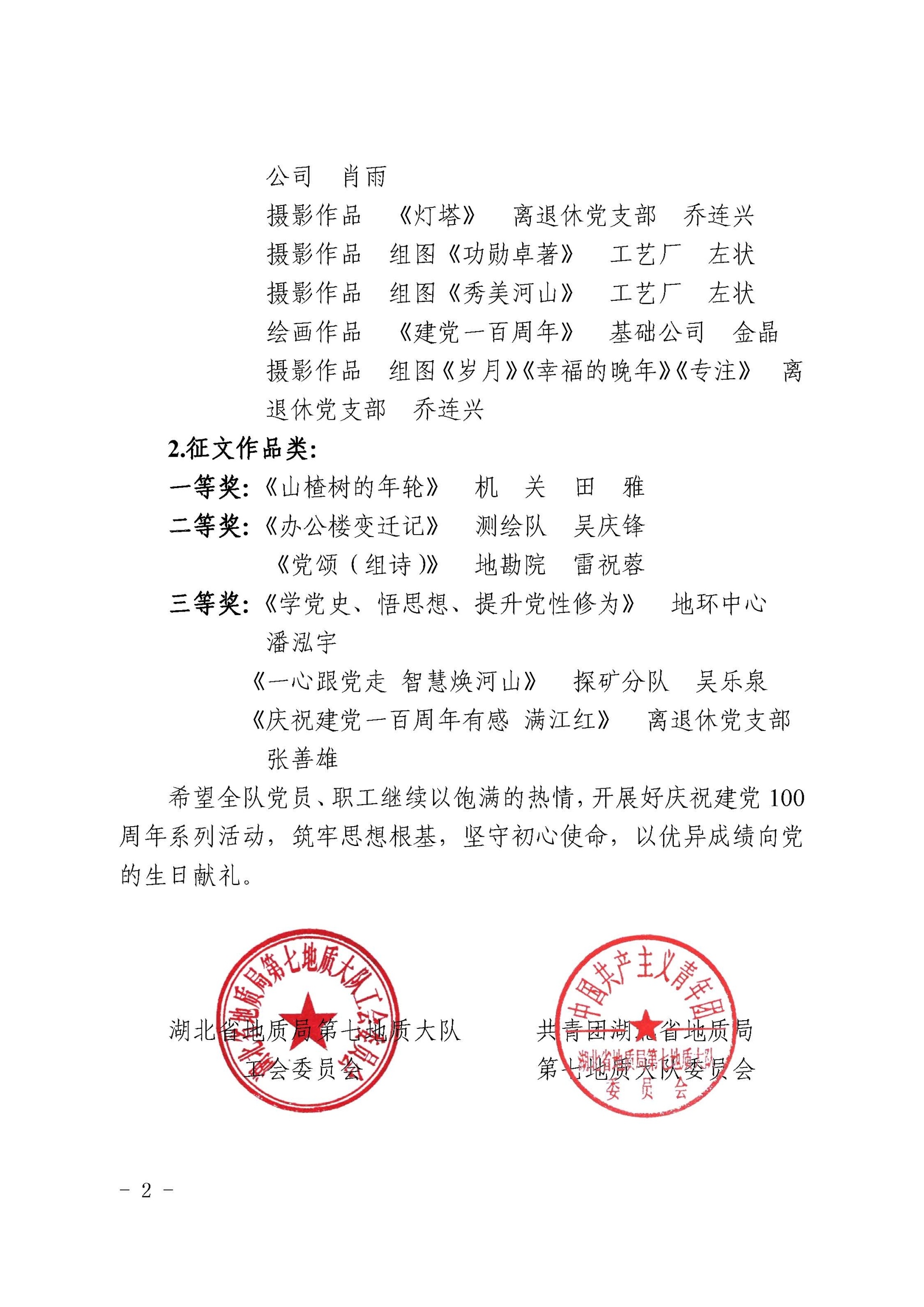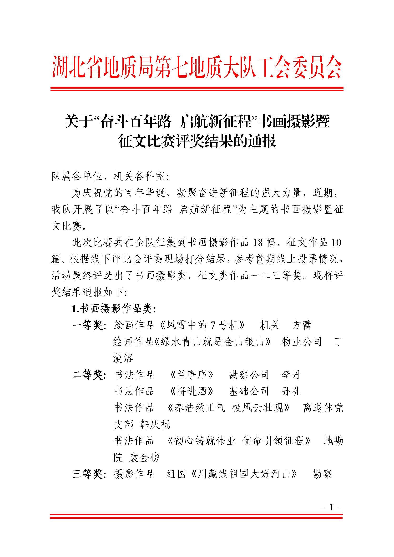 近(jìn)日(rì),我公司參加大(dà)隊工(gōng)會(huì)舉辦的(de)“奮鬥百年(nián)路(↔lù) 啓航新征程”書(shū)畫(huà)攝影(yǐng)暨征文(wén)比賽。我公司職工(gōng)吳慶鋒的(de)參賽作(zuò)品《辦公樓變遷記》榮獲征文(wén§)類二等獎。