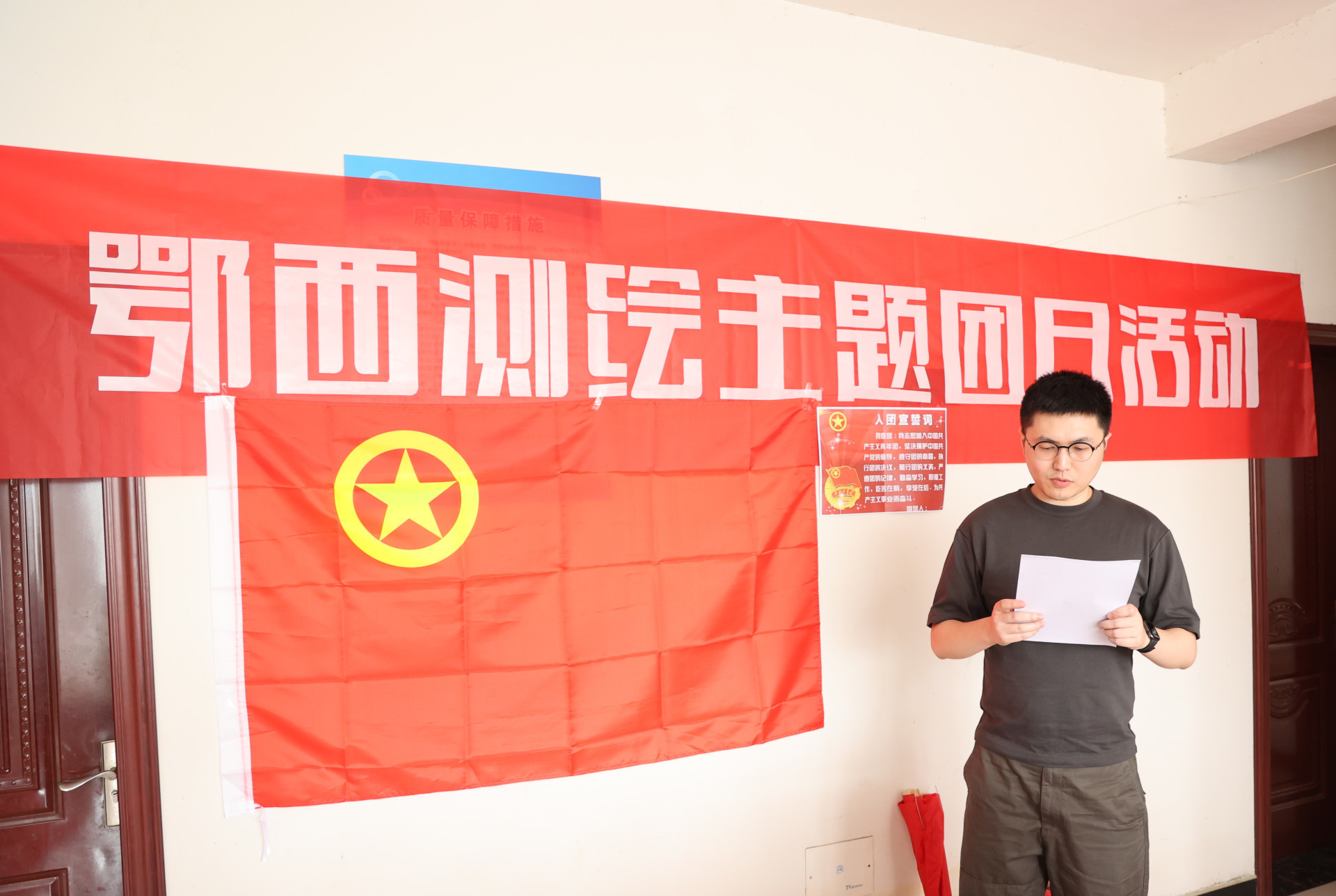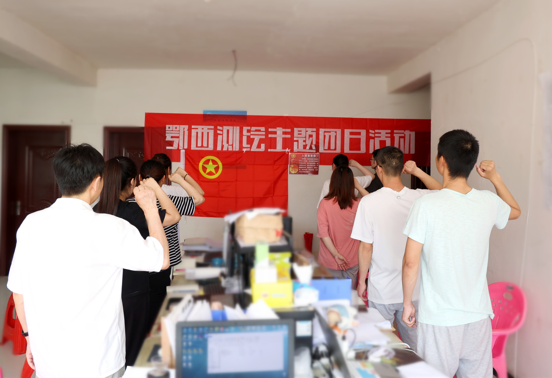 首先進行(xíng)的(de)是(shì)挂團旗、戴團徽、唱(chàng)團歌(gē)、溫誓詞活動。由公司團支部書(s₹hū)記楊涵帶領大(dà)家(jiā)在項目部進行(xíng)莊嚴的(de)入團宣誓:“我志(zhì)願加入中國(guó)共産主義青年(nián)團,堅決擁護中國(guó)™共産黨的(de)領導,遵守團的(de)章(zhāng)程,為(wèi)共産主義而奮鬥…”誓詞铿锵有(yǒu)力,觸人("rén)心弦。