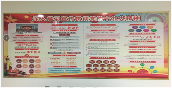 10月(yuè)18日(rì),組織全隊在家(jiā)幹部職工(gōng)觀看(kàn)十九大(dà)開(kāi)幕式盛況直播,全程聽(tīng)取了( le)習(xí)近(jìn)平總書(shū)記作(zuò)的(de)工(gōng)作(zuò)報(bào)告;11§月(yuè)10日(rì),黨支部開(kāi)展了(le)以“認真學習(xí)十九大(dà)精神,努 力完成全年(nián)目标任務”為(wèi)主題的(de)黨日(rì)活動;11月(yuè)24日(rì),隊領導班子(zǐ)成員(y¥uán)參加了(le)學習(xí)貫徹黨的(de)十九大(dà)精神省委宣講團報(bào)告會(huì)暨黨員(yuán)♣領導幹部視(shì)頻(pín)培訓班;11月(yuè)20-24日(rì),支部書(shū)記參加了₩(le)地(dì)質局黨校(xiào)舉辦的(de)“黨務幹部學習(xí)貫徹十九大(dà)精神”脫産培訓;11月(yuè)29日(rì§)召開(kāi)支委會(huì),專題布置深入貫徹學習(xí)十九大(dà)精神相(xiàng)關工(gōng)作(zuò);12月(yuè)12日(rì),圍繞“學習(x☆í)貫徹十九大(dà)精神,嚴肅黨內(nèi)政治生(shēng)活,深入推進項目建設年(nián)活動”主題,召開(kāi)領導班子(zǐ)民(mín)主生(shēng)活會(huì)☆,分(fēn)管領導冉瑞生(shēng)在會(huì)上(shàng)講了(le)題為(wèi)《把十九大(dà)精神貫徹落實到(dào)我隊地(dì)質工(gōng)作(zuò)創÷新轉型發展中》黨課;測繪隊還(hái)在辦公場(chǎng)所顯眼位置懸挂“深入學習(xí)宣傳貫徹黨的(de)十九大(dà)€精神”宣傳展闆,營造濃厚學習(xí)氛圍。